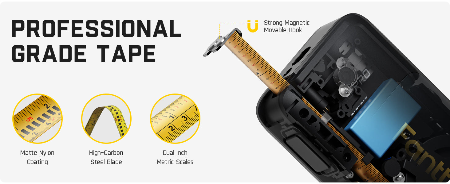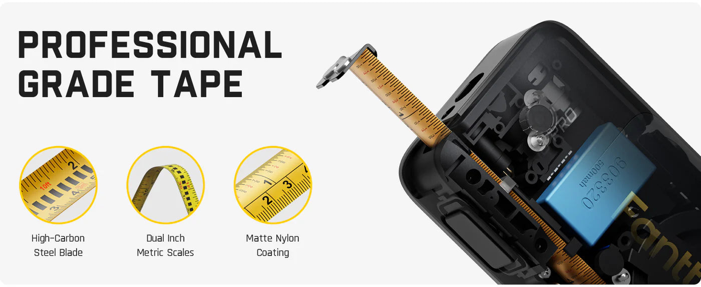 The A10 Pro combines a tactile 9.8Ft tape for detail work and a 165Ft laser for large spaces - dual functionality eliminates tool switching and adapts instantly to any scenario.