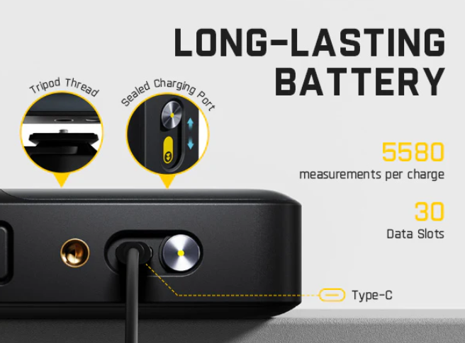 The A10 Pro offers 30 built-in slots for quick access to past measurements. A hidden Type-C port and a battery lasting 5,000+ uses per charge keep you powered through long days. One charge, seamless performance—no swaps, no distractions